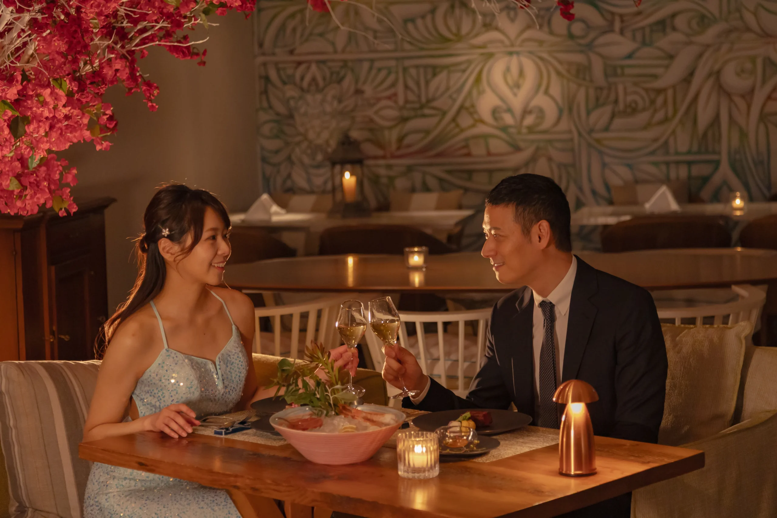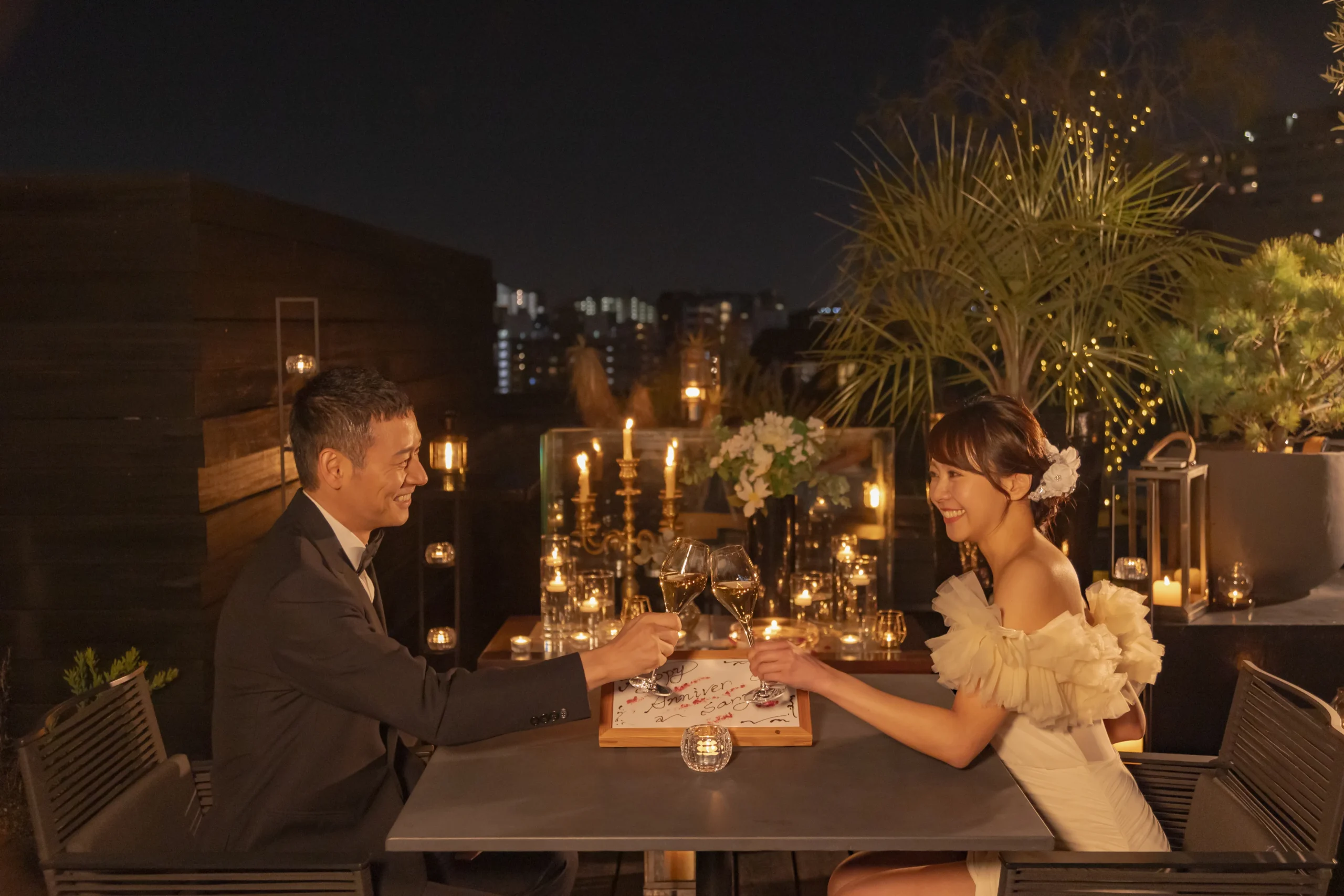 キャンドルで装飾されたテラス席または個室/半個室で、周囲を気にせず、想いを伝えることができます。