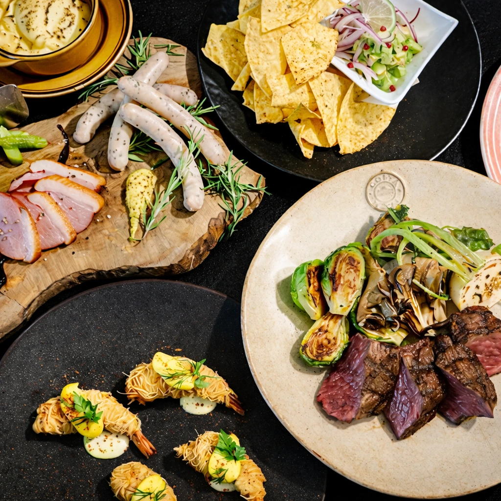 A sharing-style course available for groups of four or more, featuring a 2-hour free-flow beverage experience. Set within an art-inspired space reminiscent of the American West Coast, guests can enjoy a curated selection of dishes in a refined yet relaxed atmosphere. Perfect for gatherings with friends or colleagues. 7 Dishes | 2-Hour Free-Flow Included | ¥11,000 per person ■ Cold Appetizers Charcuterie Selection Today’s Rillettes / Smoked Duck / Lemon & Herb Pork Sausage Avocado Dip with Yuzu Kosho Served with Tortilla ■ Salad Grilled Romaine Lettuce Salad Honey Citrus Vinaigrette ■ Hot Appetizers Shrimp Kadaif Roll Saffron Aioli Baked Scallops Herb Breadcrumb Crust ■ Main Wood-Fired Grilled Hida Beef Ichibo Served with: Mashed Potatoes / Roasted Brussels Sprouts ■ Dessert Gelato of the Day ■ Beverages(Free-Flow / 2 Hours) Beer Red Wine (Cabernet Sauvignon) White Wine (Chardonnay) Highball Gin Buck / Gin & Tonic Moscow Mule / Vodka Tonic Orange Juice Oolong Tea Ginger Ale Menu items may vary depending on seasonal availability. For full menu details, please contact us in advance. All prices are inclusive of tax. A 10% service charge will be added. |