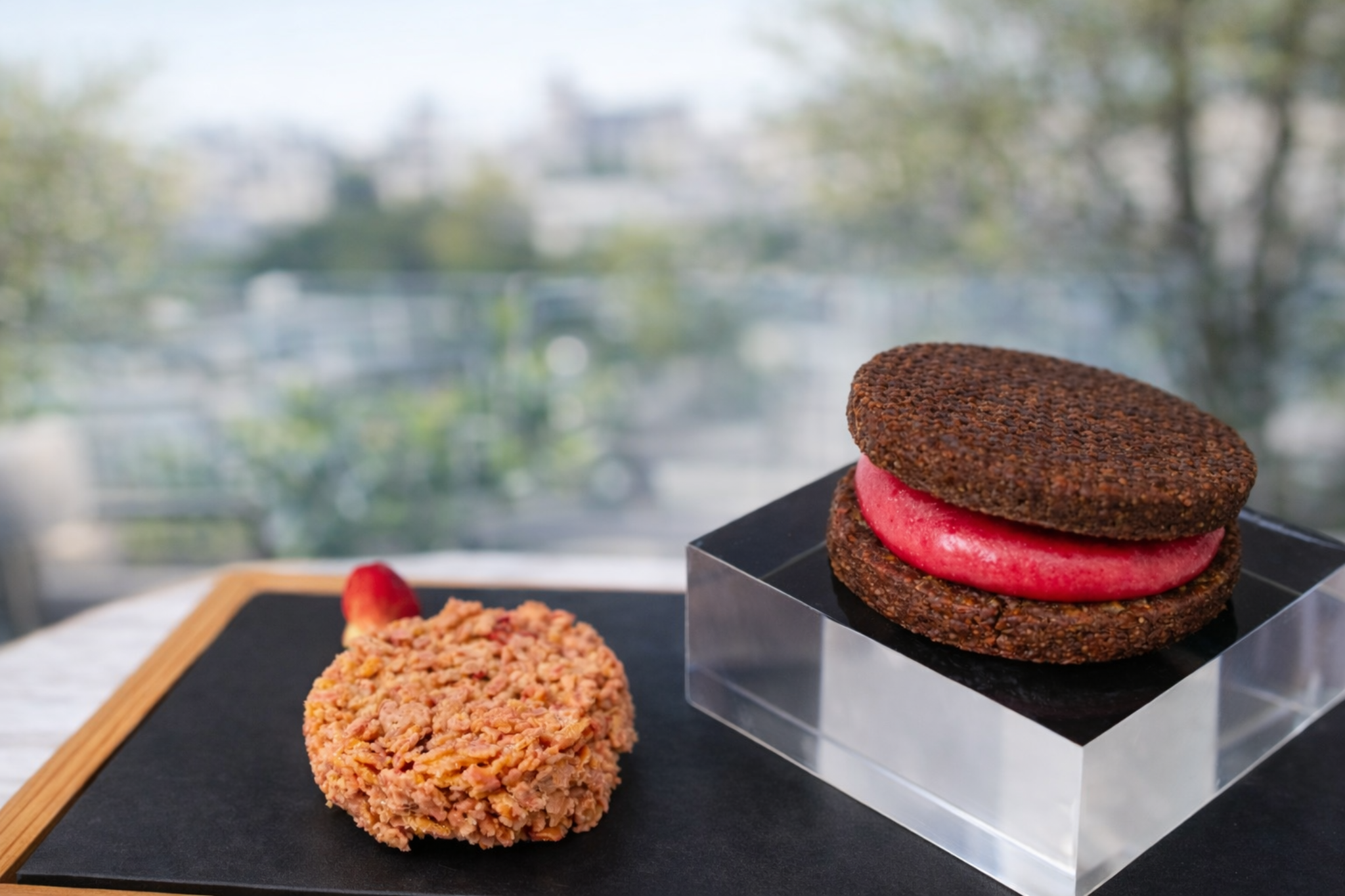 Venison loin mini burger, scallop and kumquat carpaccio, and strawberry and cream cheese quiche